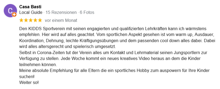 Gemeinsam – Wir helfen Kindern dabei, den Wert von Gemeinschaft, Kooperation und gegenseitiger Rücksichtnahme zu leben. (gemeinsam Start und Ende, alle gleiche Übungen, Vorbild der Eltern, Pünktlichkeit)